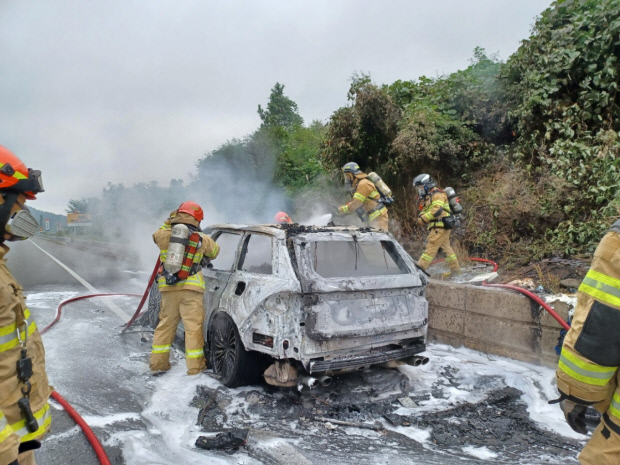 14일 전남소방 등에 따르면 전날 오전 11시 40분께 순천시 서면 호남고속도로(광주 방면) 순천휴게소 인근을 주행하던 SUV에서 화재가 발생했다.