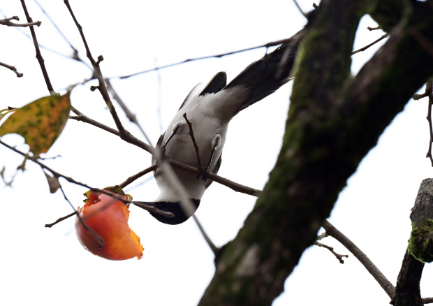 16일 오후 광주시 북구 중외공원의 감나무에서 까치가 단감을 맛있게 쪼아먹고 있다. /나명주 기자 mjna@kwangju.co.kr
