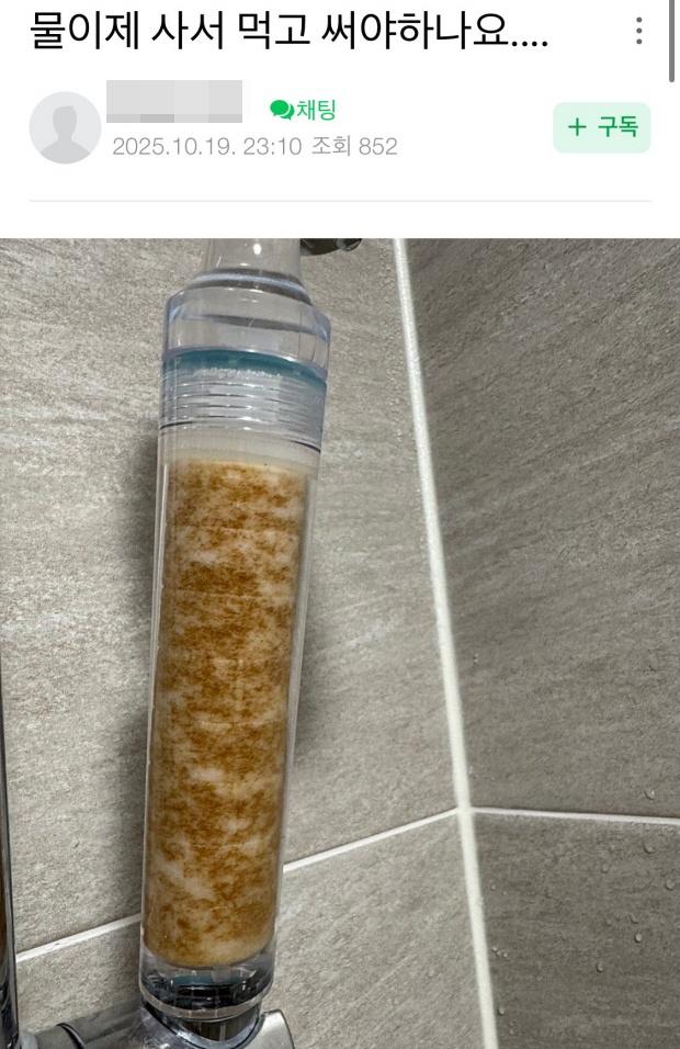 20일 당근마켓 등에는 “샤워기 필터가 하루 만에 누렇게 변했다”, “샤워 후 몸이 가렵고 붉은 반점이 올라왔다”는 글이 잇따랐다. 광산구 신흥동, 도산동, 산정동, 우산동, 서구 풍암동 등지 주민들도 “우리집도 그렇다”며 피해 사실을 공유했다.