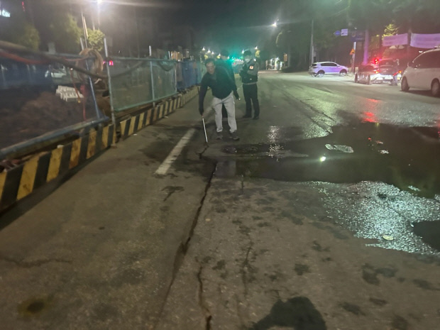 상수도사업본부는 지하에 매설된 상수도관이 파손되면서 균열 및 땅꺼짐이 발생한 것으로 추정 중이다.