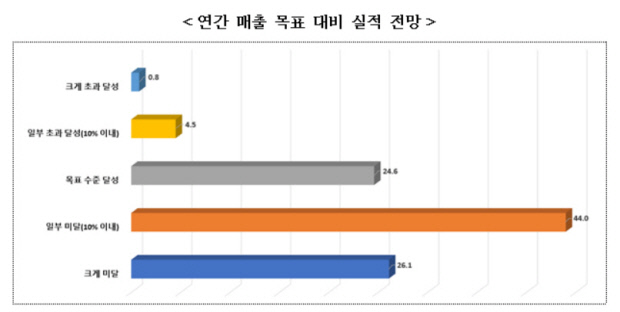 제조 기업의 연간 영업이익 전망 역시 70.9%의 기업이 ‘목표치 미달’을 예상했다.