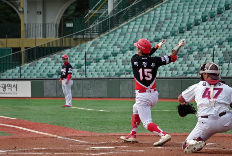 | 4회초 볼넷으로 출루한 정해원이 박상준의 몸에 맞는 볼로 2루로 이동했다. |