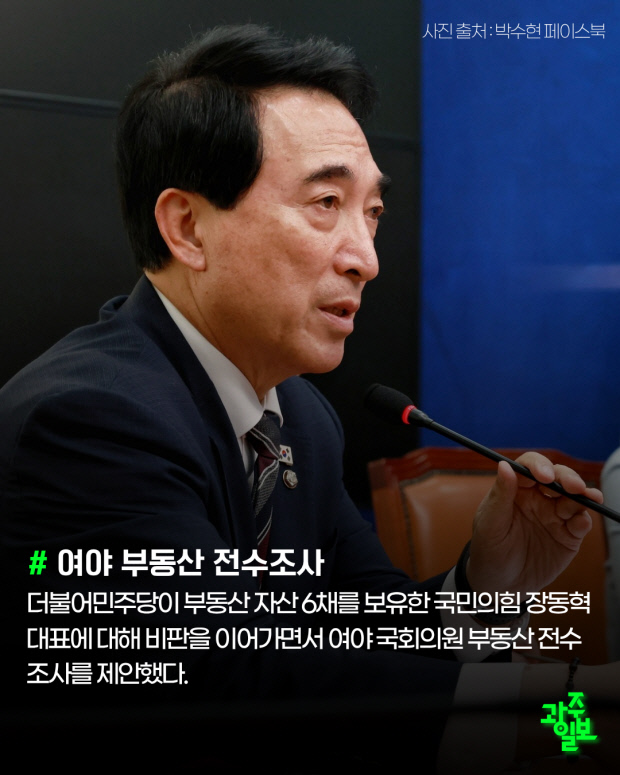더불어민주당이 부동산 자산 6채를 보유한 국민의힘 장동혁 대표에 대해 비판을 이어가면서 여야 국회의원 부동산 전수조사를 제안했다.