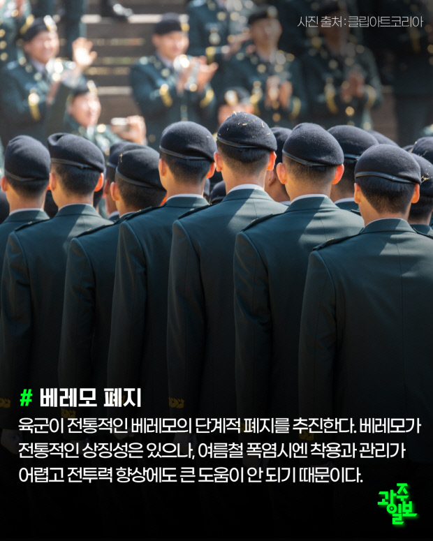 육군이 전통적인 베레모의 단계적 폐지를 추진한다. 베레모가 전통적인 상징성은 있으나, 여름철 폭염시엔 착용과 관리가 어렵고 전투력 향상에도 큰 도움이 안 되기 때문이다.