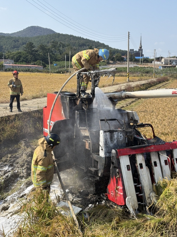 이 불로 콤바인 1대가 전소되고, 수확한 벼 150㎏이 불에 타 소방추산 2483만여원의 재산피해가 났다.