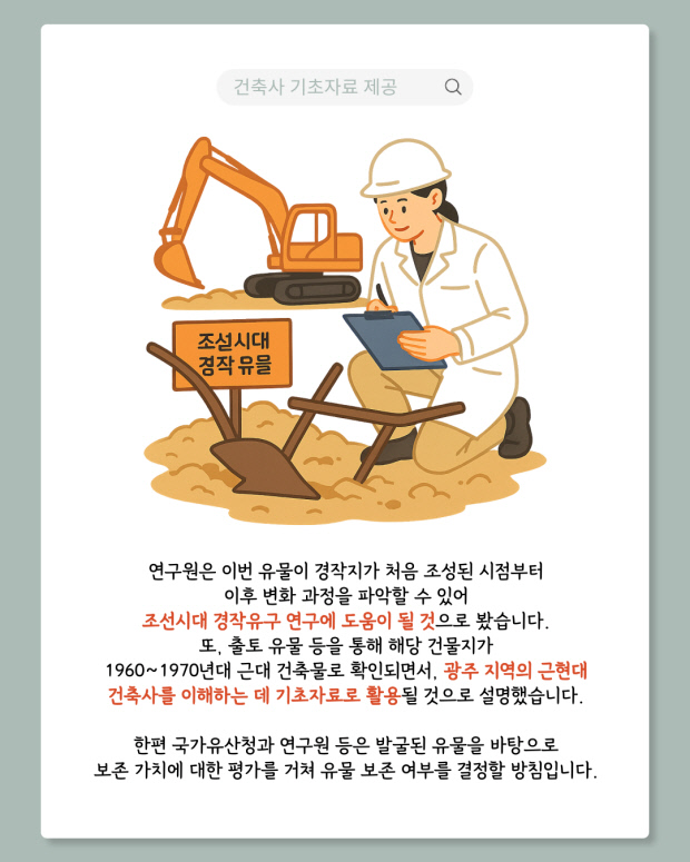 연구원 측은 이번 유물이 광주천 중류 지역에서 최초로 발견된 경작 유물이라고 설명했습니다.