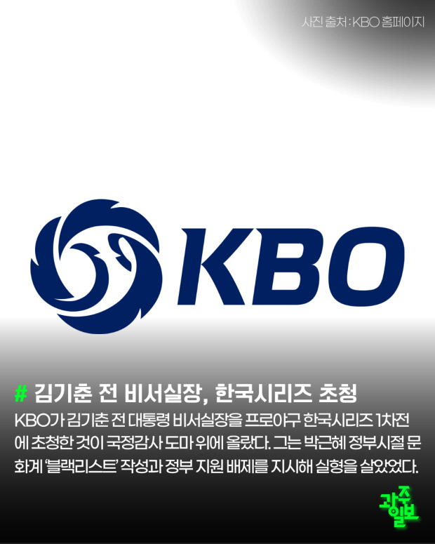 KBO가 김기춘 전 대통령 비서실장을 프로야구 한국시리즈 1차전에 초청한 것이 국정감사 도마 위에 올랐다. 그는 박근혜 정부시절 문화계 ‘블랙리스트’ 작성과 정부 지원 배제를 지시해 실형을 살았었다.