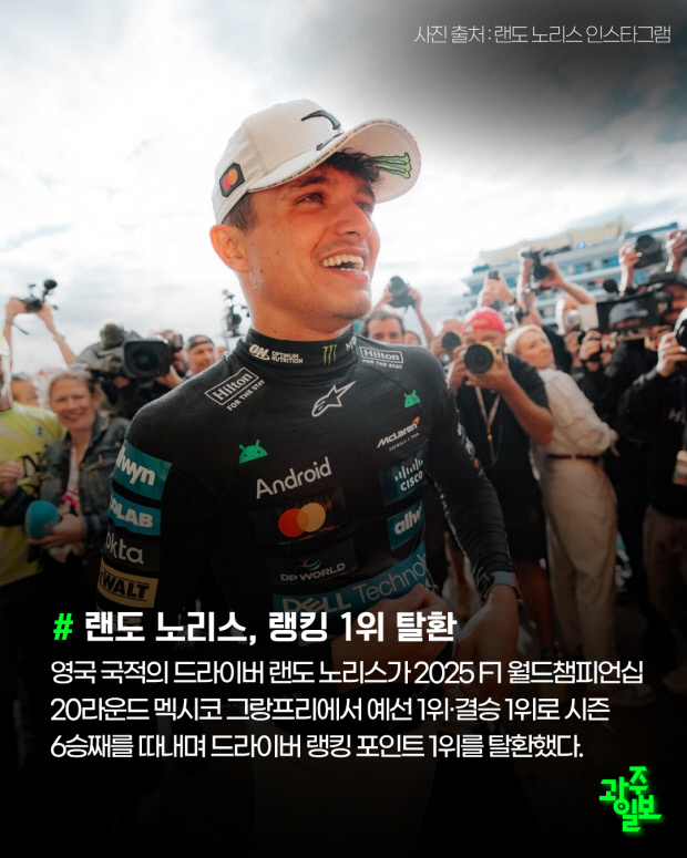 영국 국적의 드라이버 랜도 노리스가 2025 F1 월드챔피언십 20라운드 멕시코 그랑프리에서 예선 1위·결승 1위로 시즌 6승째를 따내며 드라이버 랭킹 포인트 1위를 탈환했다.