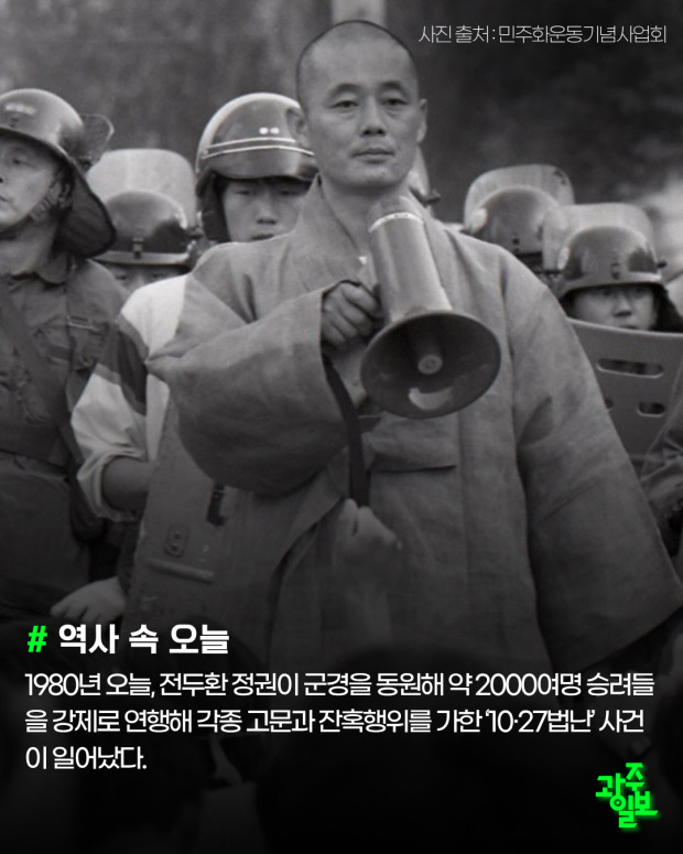 1980년 오늘, 전두환 정권이 군경을 동원해 약 2000여명 승려들을 강제로 연행해 각종 고문과 잔혹행위를 가한 ‘10·27법난’ 사건이 일어났다.