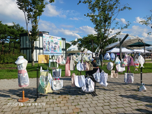 폐현수막을 재활용해 만들어진 모자·가방·앞치마. 전남의 각 지자체는 지난 2023년부터 ‘푸른바다 큰물고기 프로젝트’를 통해 현수막 자투리를 활용한 다양한 사업을 추진해오고 있다. <나주시 제공>