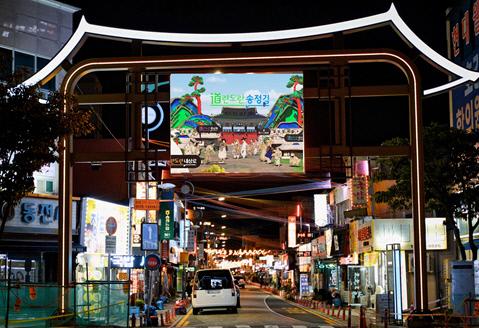 | 광주송정역 상권 활성화 등을 위해 광주 광산로 인근에 새로 설치된 ‘미디어 문주’ |