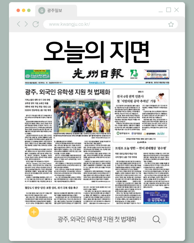 [오늘의 지면] 광주시, 외국인 유학생 유치·정착 위한 법적 근거 마련