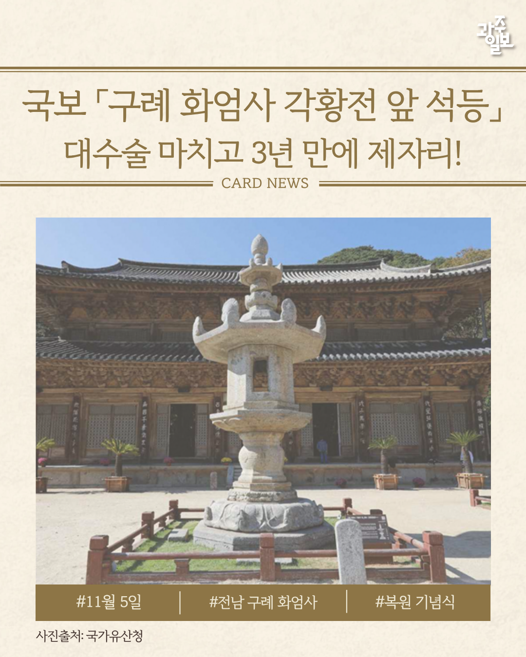 최근 ‘화엄사 각황전 앞 석등’이 3년 만에 복원이 완료됐다.