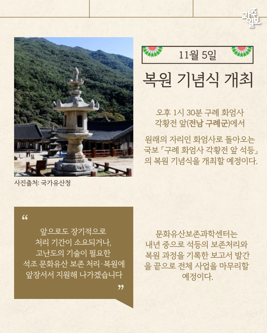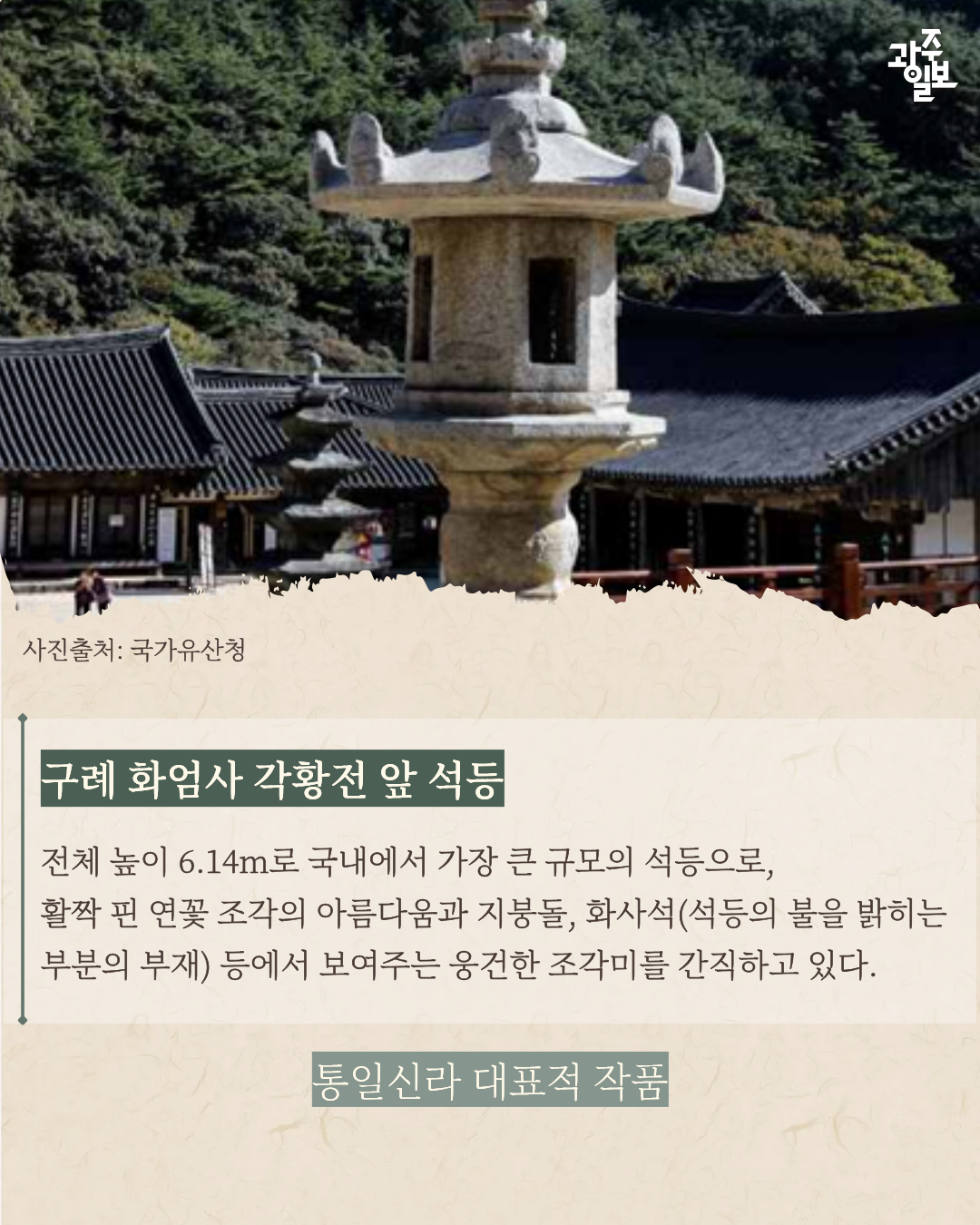 우리나라 가장 큰 석등인 구례 ‘화엄사 각황전 앞 석등’ 복원 완료