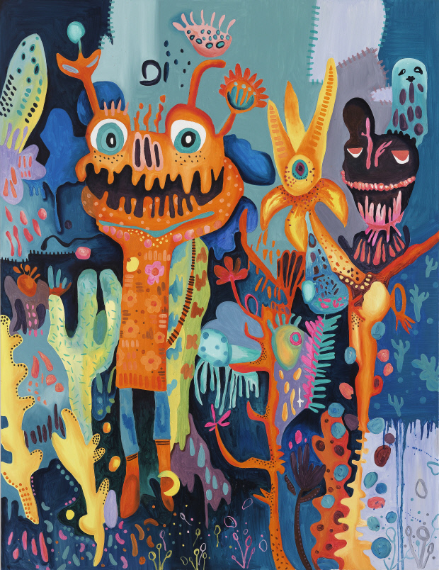 작품 ‘도씨들’은 무섭다기보다 귀엽고 깜찍한 도깨비를 초점화했다. 설화 속 도깨비는 머리에 뿔이 나 있고 방망이를 들고 있는 위압적인 모습인 데 반해, 화면 속 도깨비는 장난기가 가득하다. 알록달록한 화려한 차림은 가장무도회에 나온 도깨비들 무리를 현상시킨다. 하지만 어딘가 불안하고 초조한 모습은 오히려 이편에서 도움을 주어야 할 것처럼 보인다.
