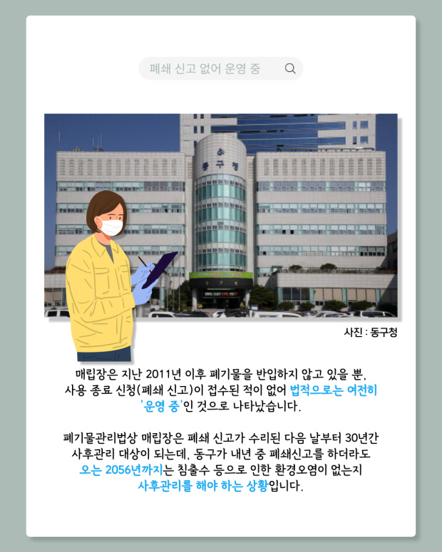 동구가 ‘동구 수소도시 사업’을 추진하면서 소태동 위생매립장 부지에 ‘친환경 가족중심 테마파크’를 설치하기로 한 데 따른 조치입니다.