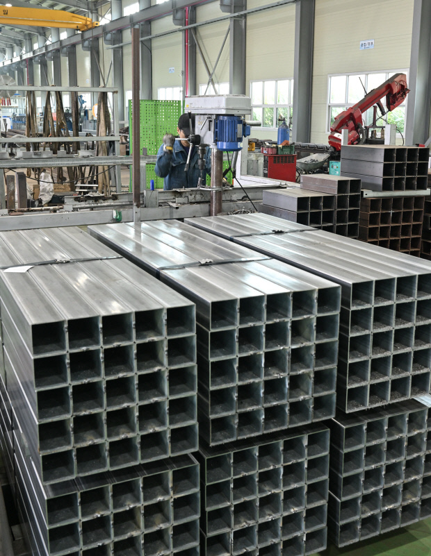 | 함평 월야면 빛그린산단에 위치한 태양광 발전 구조물 생산 및 시공업체인 현대 쏠라텍에서 근로자가 구조물 제작작업을 하고 있다. /최현배 기자choi@ |