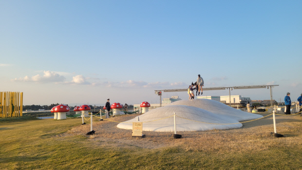 | 예술과 다지인을 잇는다는 컨셉의 토야마현립미술관도 수변공원의 핫 플레이스다. 특히 일본의 유명 그래픽디자이너 사토 타쿠가 디자인한 놀이시설이 있는 옥상정원(4층)은 남녀노소 누구에게나 인기있다. |
