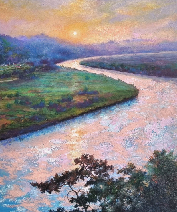 자연의 변화, 시간의 흐름을 모티브로 펼쳐지는 김순애 작가의 ‘하늘과 강, 시간의 대화’전. 영산강문화관(관장 신성규)에서 내년 1월 11일까지 진행되는 이번 전시는 풍경이 주요 모티브다.