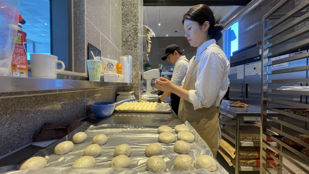| 쌀가루 지역자립형 생산모델 사업을 통해 지어진 베이커리에서 제빵사가 지역에서 생산된 가루쌀로 빵을 만들고 있는 모습. |