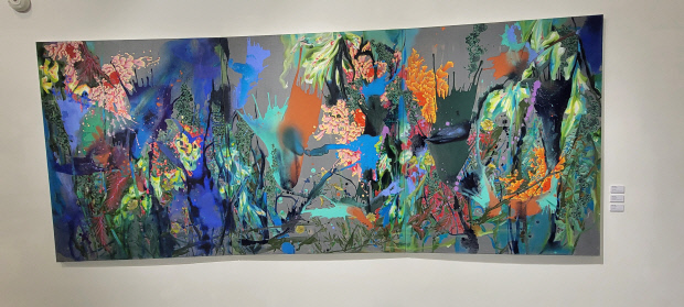 벽면을 채운 꽃의 세계는 화려하면서도 깊이감이 느껴진다. 홍익대에서 동양화를 전공하고 색채전공으로 미술학 박사학위를 받은 이력이 말해주듯 작품은 동서양이 융합된 감성을 발한다. 화려하면서도 환상적인 색감은 서양화에서, 정제된 구도와 내면의 울림은 동양화에서 영향을 받은 듯하다.