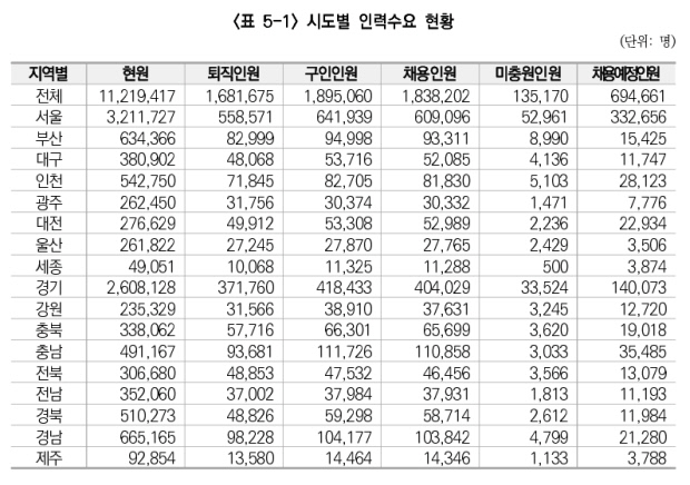 퇴직자가 채용인원보다 많아…특·광역시 유일