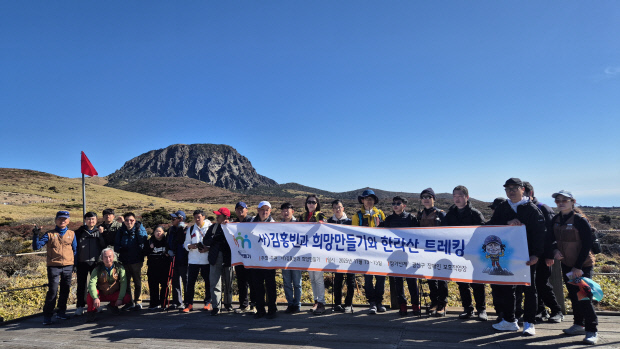 사단법인 김홍빈과 희망만들기(이사장 류재선)는 광산구장애인보호작업장(원장 나선용)과 함께 제주 한라산 장애인 트레킹 행사를 열었다. <사진>