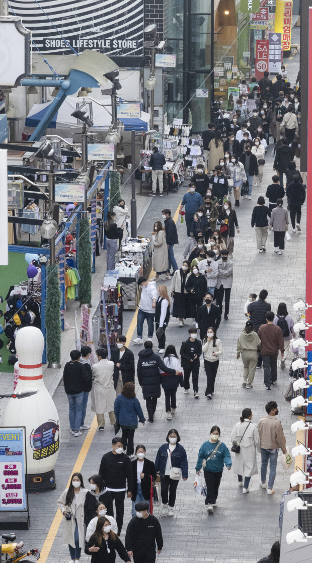 광주지역 고용원이 없는 자영업자가 2년 연속 늘고 있는 가운데 지역 소상공인들은 예상 은퇴 시기를 71.3세라고 답했다. 광주시 동구 충장로 일대를 시민들이 걷고 있다.<광주일보 자료사진>