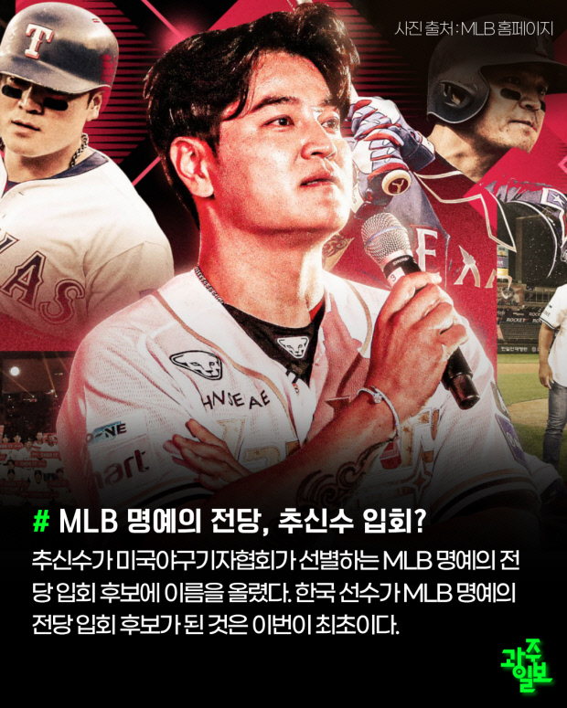 추신수가 미국야구기자협회가 선별하는 MLB 명예의 전당 입회 후보에 이름을 올렸다. 한국 선수가 MLB 명예의 전당 입회 후보가 된 것은 이번이 최초이다.