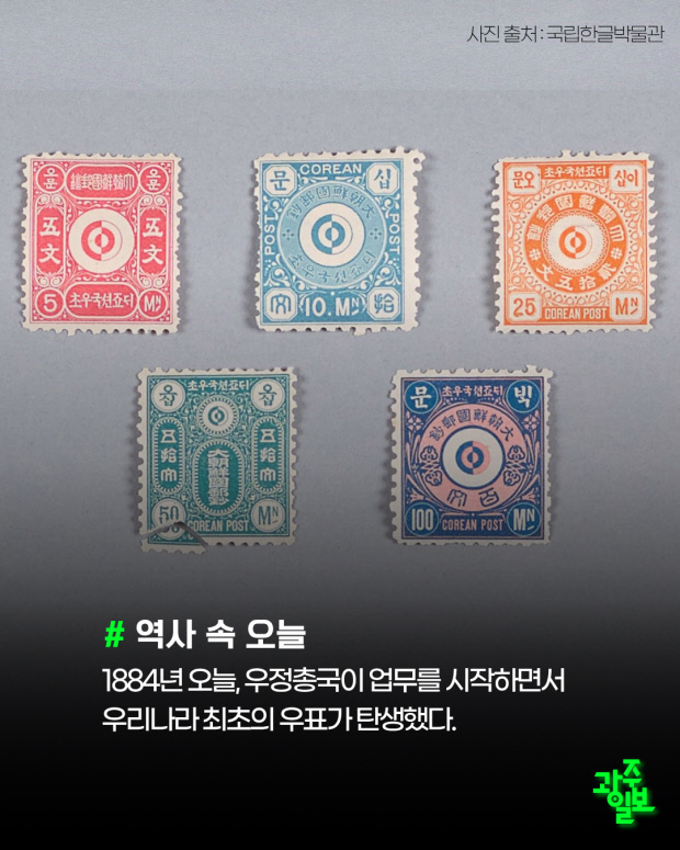 1884년 오늘, 우정총국이 업무를 시작하면서 우리나라 최초의 우표가 탄생했다.