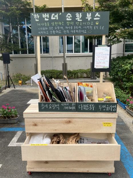 ‘한 번 더 순환부스’는 재사용 포장지, 세척된 용기 등을 배치해 시민들이 자유롭게 이용할 수 있도록 한 이동식 부스다. 신청은 네이버폼( bit.ly/일회용품없는행사)으로 가능하다. /김다인 기자 kdi@kwangju.co.kr