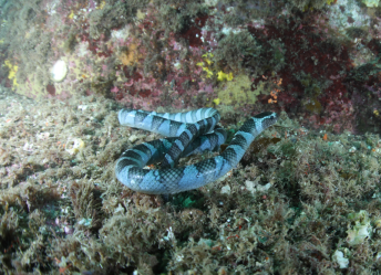 일반 독사의 20배 이상 강한 맹독을 지니고 있는 넓은띠큰바다뱀은 몸 전체에 푸른빛이 나는 ‘V’ 모양의 줄무늬가 있고, 주로 바닷속에서 생활하나 육지에서 번식과 산란 그리고 탈피를 한다.