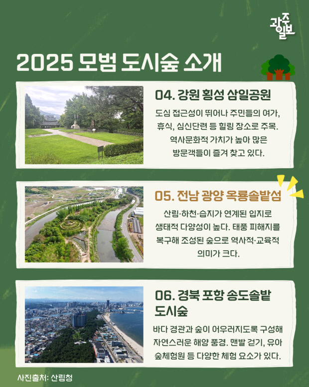 [광클] 산림청, 시민의 삶의 질을 높이는 ‘2025년 모범 도시숲’ 6곳 선정!