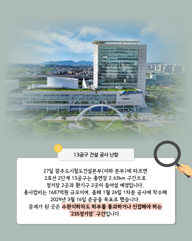[오늘의 지면] 시공불가 판정 내려진 광주 지하철 2호선 ‘235정거장’…기술적 고민