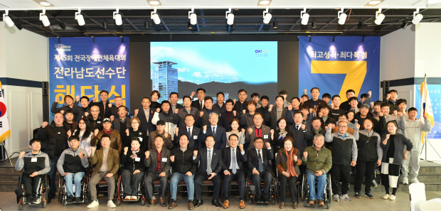 전남도장애인체육회가 제45회 전국장애인체육대회 해단식을 개최해 ‘역대 원정 최고 성적’을 거둔 선수단의 노고를 치하했다.