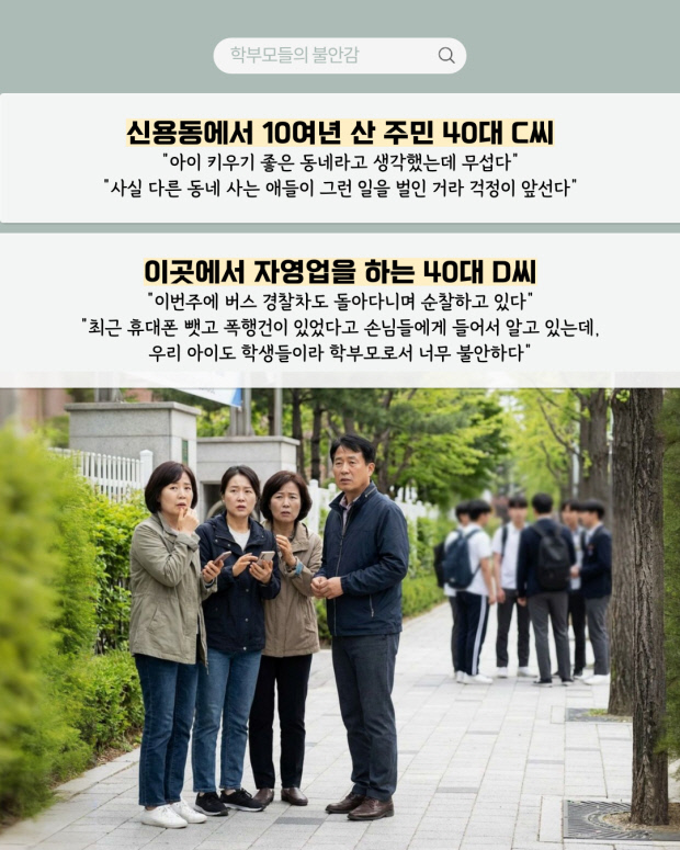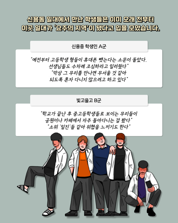 신용동 일대에서 만난 학생들은 이미 오래 전부터 이곳 일대가 ‘요주의 지역’이 됐다고 입을 모았고, 학부모들도 불안에 떨고 있습니다.