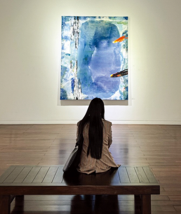 | 보성우종미술관에서 관람객이 김유섭 작가의 작품을 감상하고 있다. |