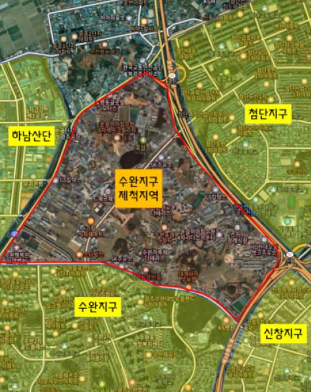 광주시 광산구 수완지구 북측(자연녹지지역)은 택지지구와 인접한 지역으로 개발압력이 높고 난개발로 인한 기반시설 부족 등의 지적이 나오고 있다. 광주시 광산구 수완지구 일대 지도.<광주시 제공>