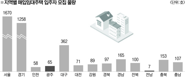 실제 서울이 1670호로 가장 많았고 경기 1258호, 대구 362호가 뒤를 이었다. 반면 광주는 65호, 전남은 7호에 불과해 두 지역을 합쳐도 전체 공급량의 1.7% 수준에 그쳤다.