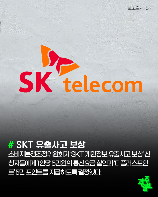 소비자분쟁조정위원회가 ‘SKT 개인정보 유출사고 보상’ 신청자들에게 1인당 5만원의 통신요금 할인과 ‘티플러스포인트’ 5만 포인트를 지급하도록 결정했다.