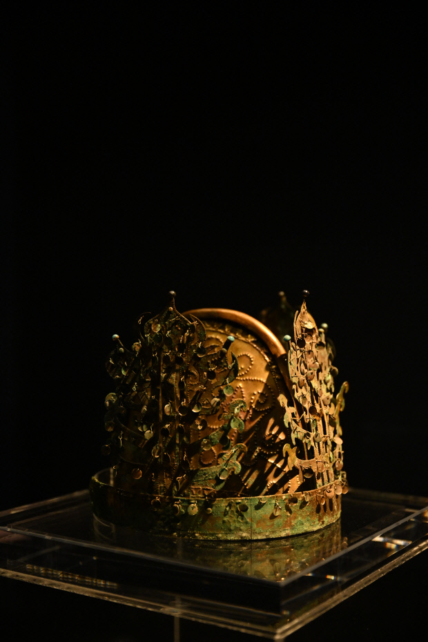 전시장 안쪽으로 들어가면 나주 신촌리 9호분에서 발견된 국보 제295호 금동관이 모습을 드러낸다. 금동관은 문화에 따라 형태가 서로 다른데 백제는 고깔형, 신라나 가야는 둥근 테를 중심으로 나뭇가지 모양 장식을 단 대관형이다. 나주 신촌리 금동관은 모관과 대관이 함께 세트를 이루는 형태로, 백제의 관들과 다른 독특한 지역양식을 띠고 있다.