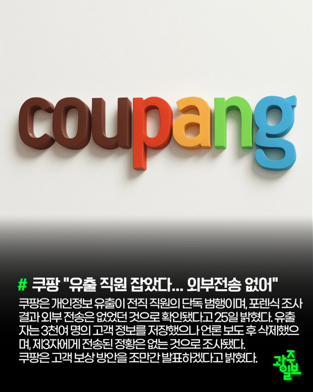 쿠팡은 개인정보 유출이 전직 직원의 단독 범행이며, 포렌식 조사 결과 외부 전송은 없었던 것으로 확인됐다고 25일 밝혔다. 유출자는 3천여 명의 고객 정보를 저장했으나 언론 보도 후 삭제했으며, 제3자에게 전송된 정황은 없는 것으로 조사됐다. 쿠팡은 고객 보상 방안을 조만간 발표하겠다고 밝혔다.