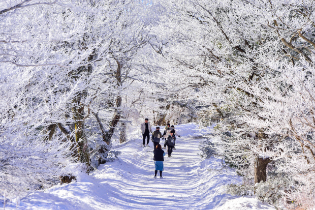 새파란 하늘과 새하얀 눈발이 어우러진 순백의 풍광은 매력적이다. 걸음을 옮길 때마다 뽀득뽀득 눈 밟은 소리, 새하얗게 펼쳐진 설원의 장관, 고요한 자연을 오롯이 느끼며 걸을 수 있는 곳이다. 나뭇가지를 감싸 안은 상고대는 그야말로 절정이다.