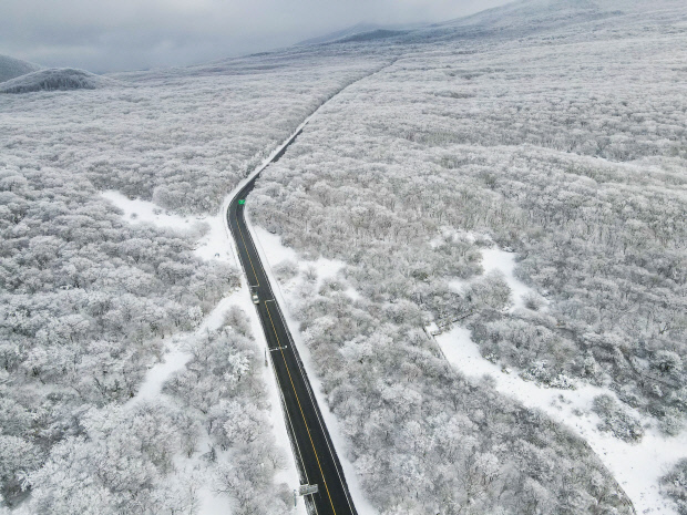 | 1100도로 설경-제주시와 서귀포시 중문동을 잇는 1100도로는 1100고지를 정점으로 설경을 감상하기에 좋다. |