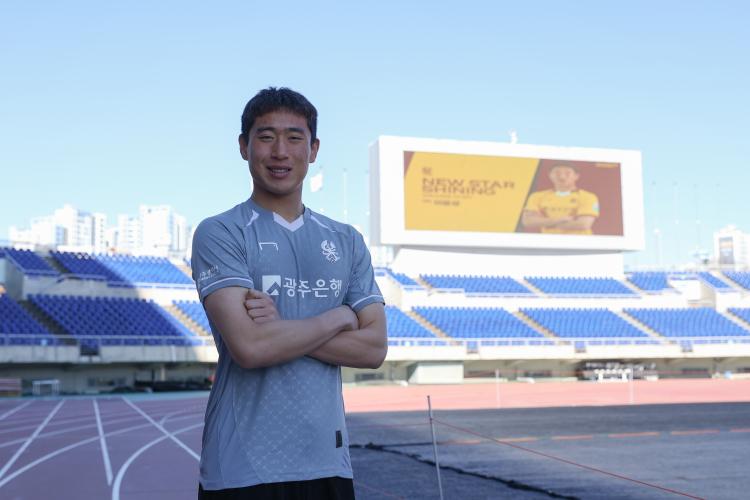 이윤성은 광주의 상반기 선수 등록 금지 징계에 따라 오는 6월까지 팀의 전술 이해도를 더하고, 적응의 시간을 보낸 뒤 경기에 나설 예정이다. /김여울 기자 wool@kwangju.co.kr