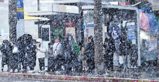 광주·전남에서 최근 10년간(2015~2024년) 한파가 불어닥치는 1월과 12월에 월별 사망자가 가장 많은 것으로 나타났다. 강추위 속에서 버스를 기다리는 시민들.<광주일보 자료사진>