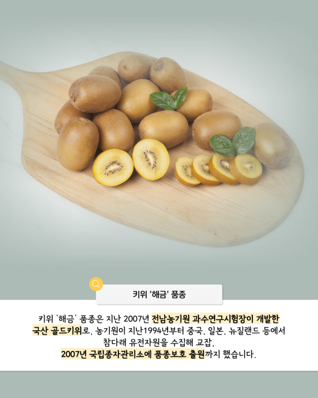 키위 ‘해금’ 품종은 지난 2007년 전남농기원 과수연구시험장이 개발한 국산 골드키위로, 2007년 국립종자관리소에 품종보호 출원까지 했습니다.
