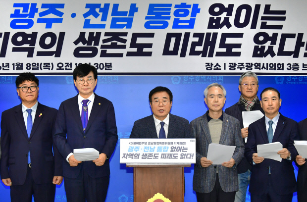민주당 호남발전특위는 8일 오전 광주시의회 브리핑룸에서 기자회견을 열고 “광주와 전남의 행정통합은 더 이상 선택의 문제가 아니라 지역의 생존과 미래를 결정짓는 필수불가결한 과제”라며 이같이 밝혔다.