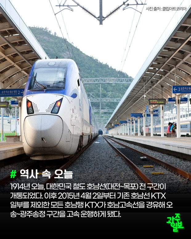 1914년 오늘, 대한민국 철도 호남선(대전~목포) 전 구간이 개통되었다. 이후 2015년 4월 2일부터 기존 호남선 KTX 일부를 제외한 모든 호남행 KTX가 호남고속선을 경유해 오송~광주송정 구간을 고속 운행하게 됐다.