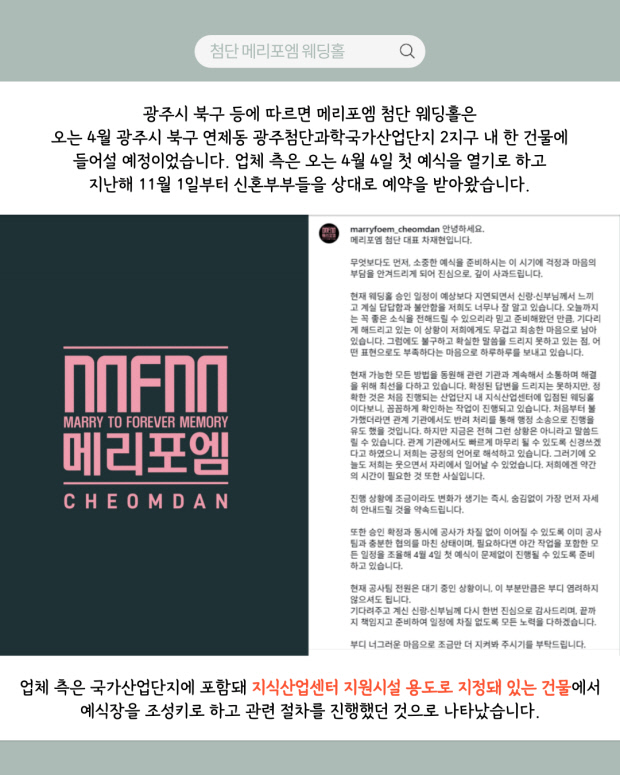 [오늘의 지면] 개관 3개월 앞두고 취소한 웨딩홀…예비부부 350여 명 피해